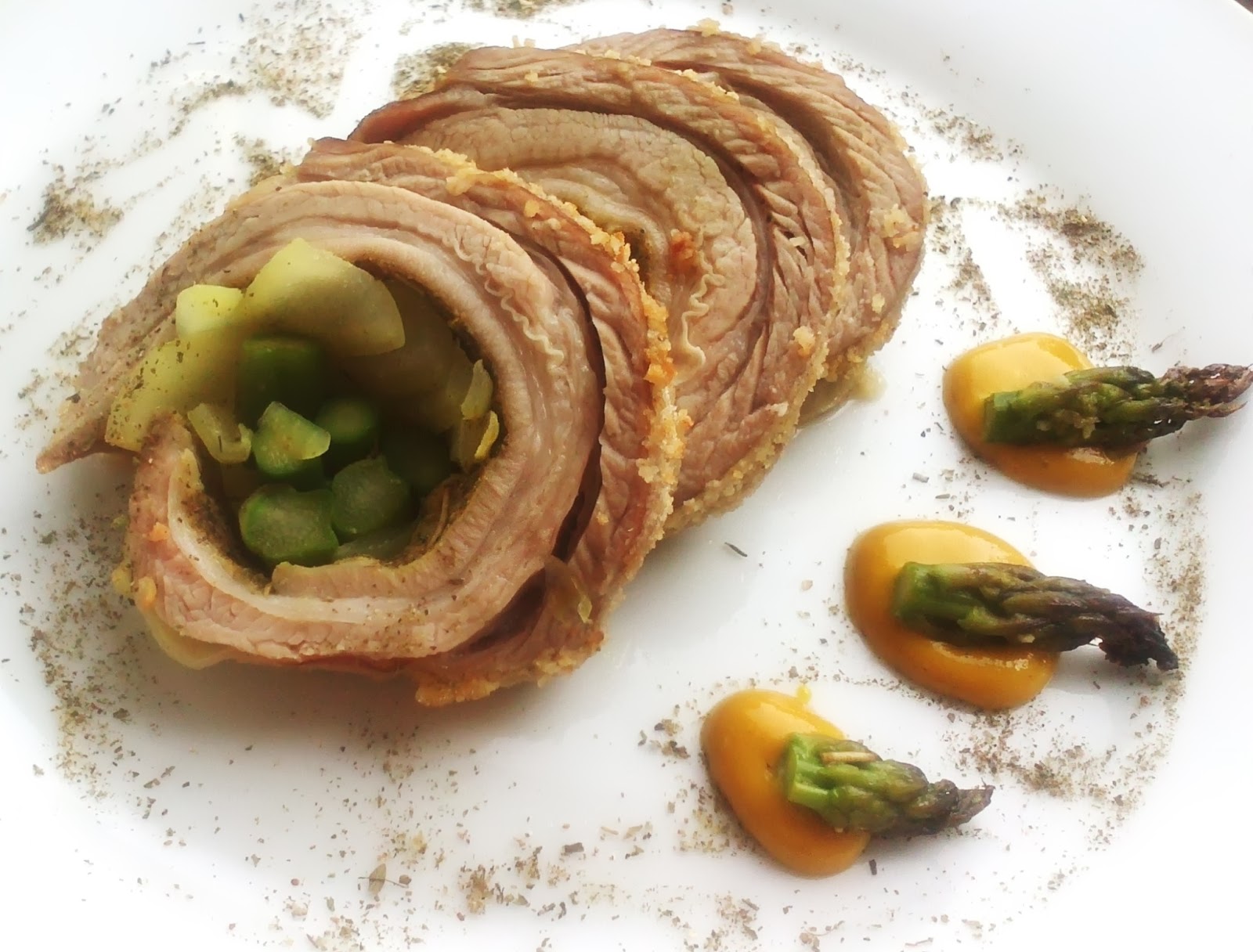 - Cut the onions and asparagus and place them in the middle. If you use fresh Rosemary, you may put it together as well