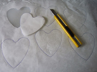 - 先在牛油紙上繪出心心 (看圖), 用刀小心介出形狀